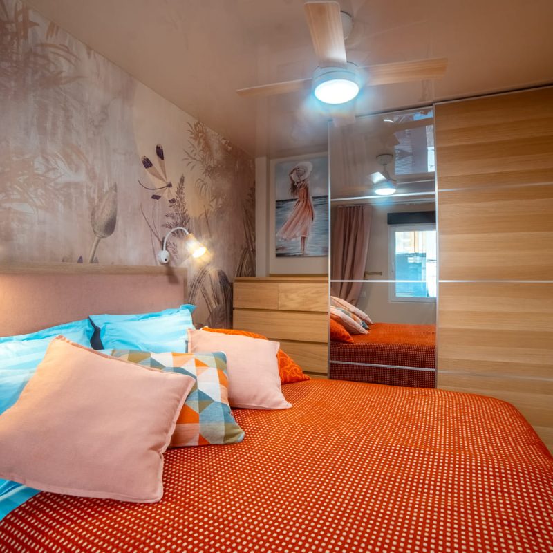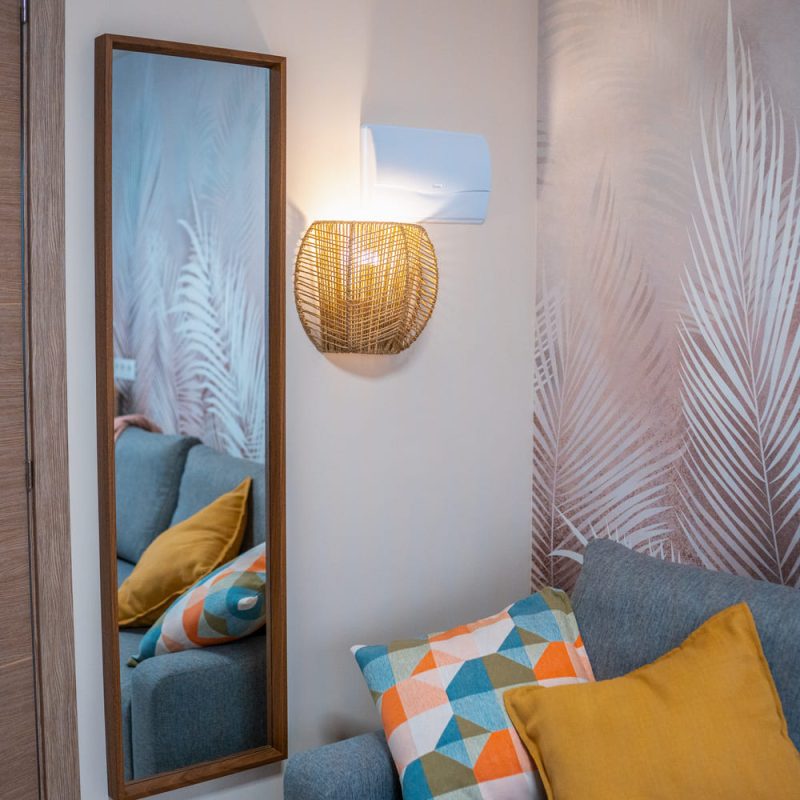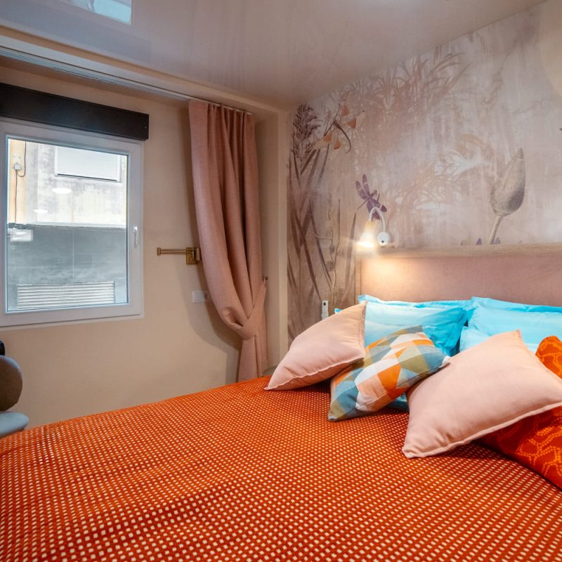 В спальне есть двуспальная кровать, шкаф для вещей и сейф для хранения ценностей. Гостиная с дополнительным диваном и кондиционером идеально подходит для отдыха после прогулок по городу. Кухня полностью оборудована техникой и посудой, а практичная галерея обеспечивает удобство пребывания.
