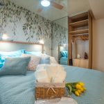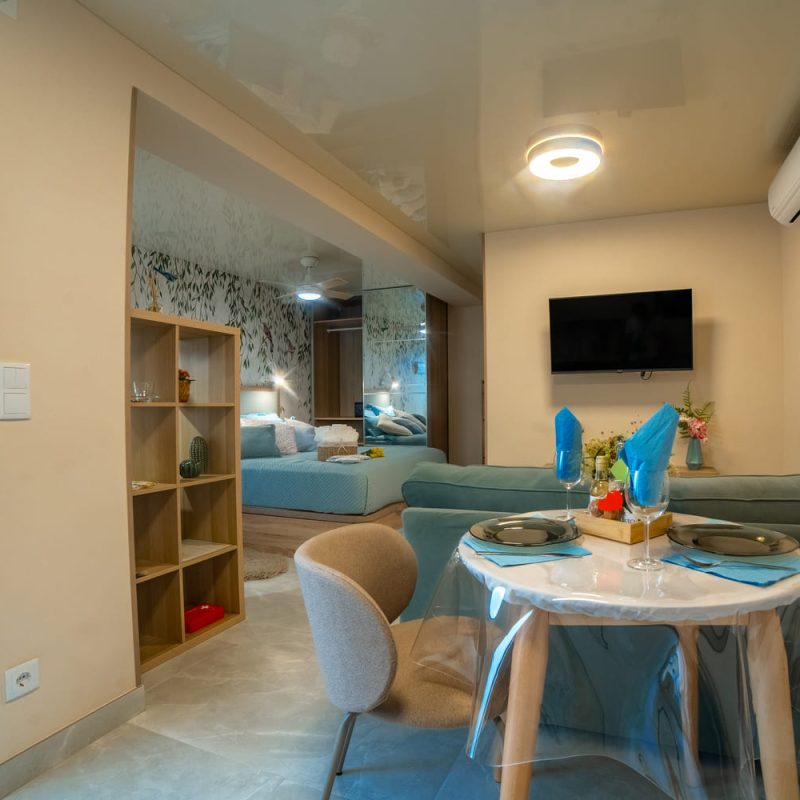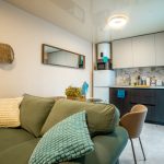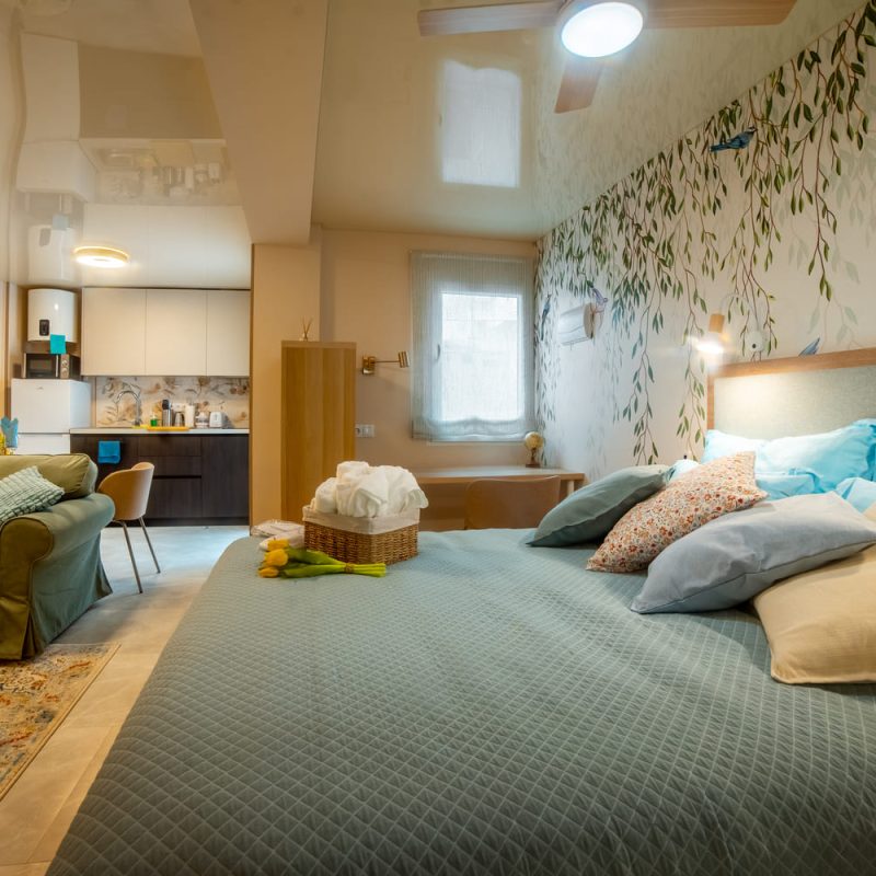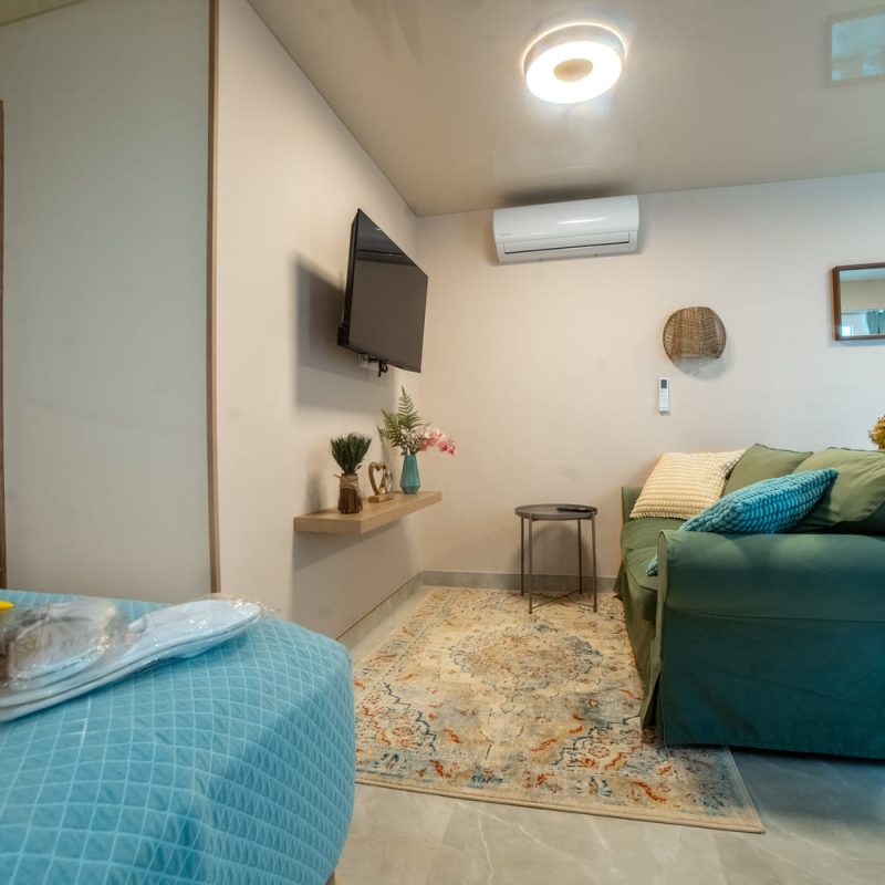В спальне гостей ждёт двуспальная кровать, шкаф для одежды и сейф для хранения ценных вещей. В гостиной есть диван-кровать и кондиционер, обеспечивающие комфортный отдых. Полностью оборудованная кухня с техникой и посудой, а также балкон создают удобство во время проживания.